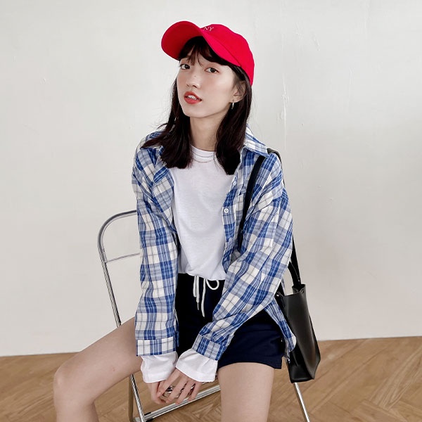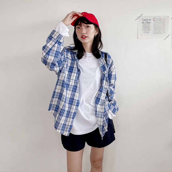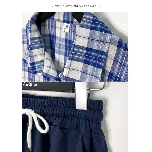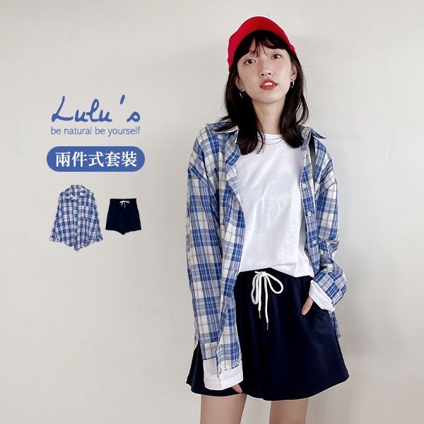 LULUS【A01210588】E兩件式-格紋襯衫+短褲深藍0812