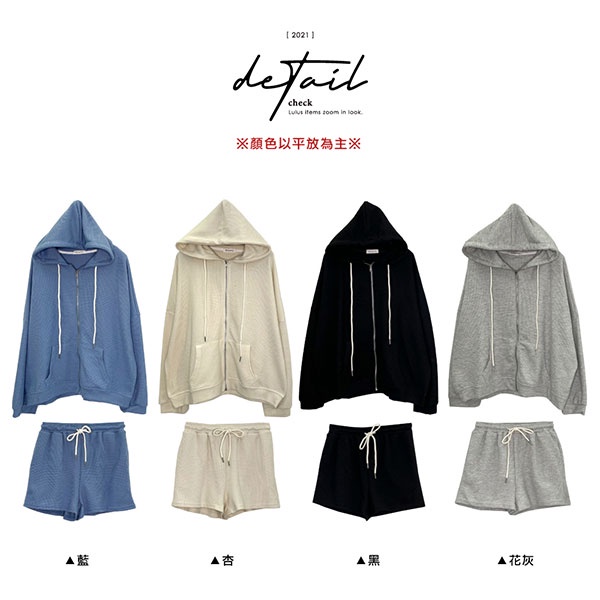 LULUS【A01210744】M兩件式格狀拉鍊外套+短褲4色0909