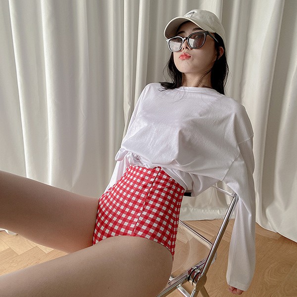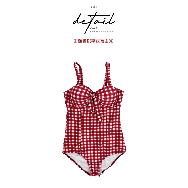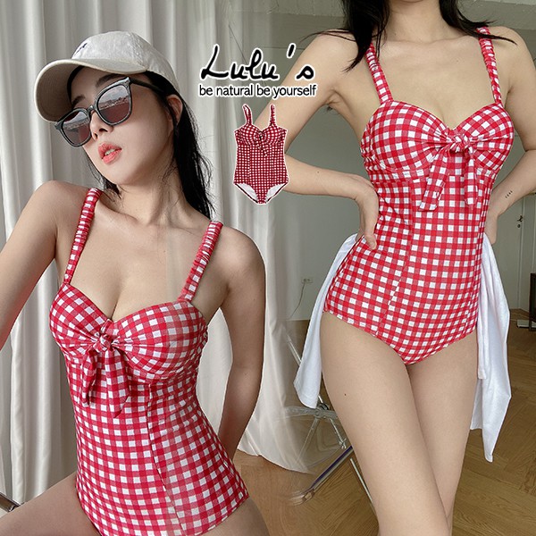 LULUS【A01210356】N方格連身泳衣M-XL紅0805
