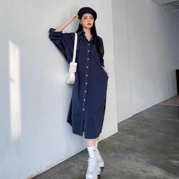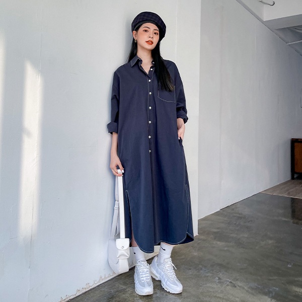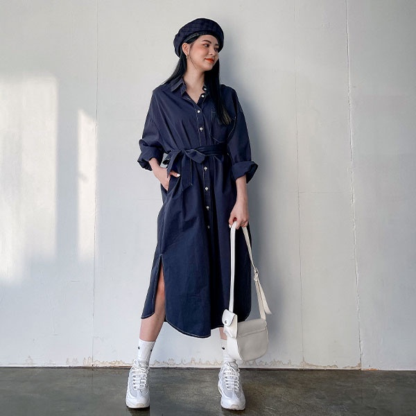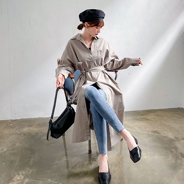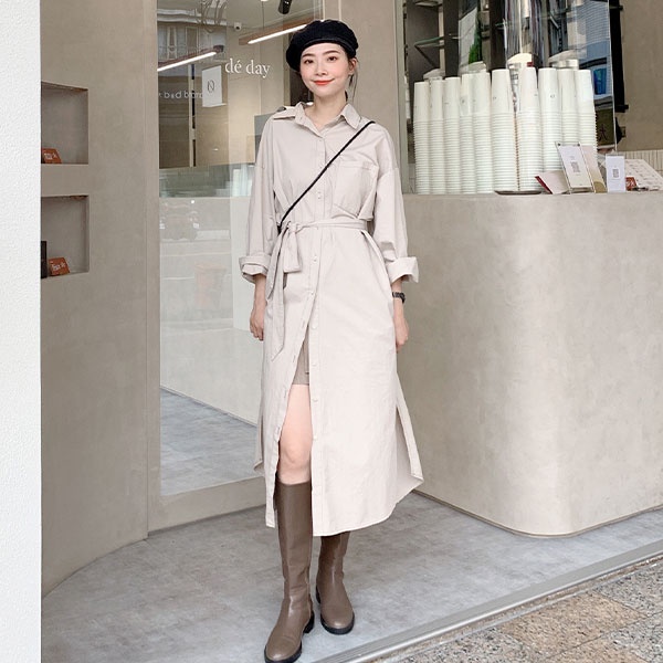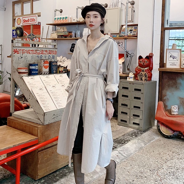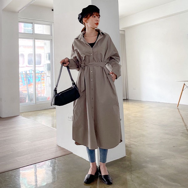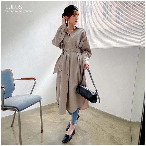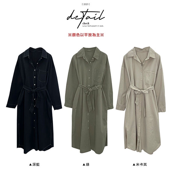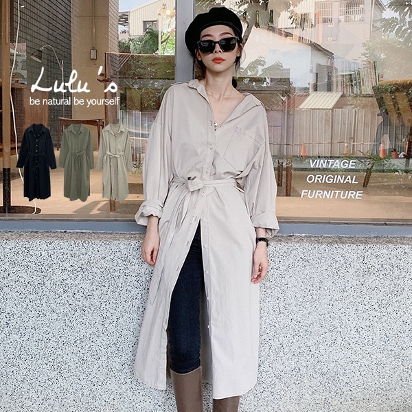 LULUS【A01210723】C車線口袋長版襯衫附腰帶/可當外套風衣洋裝3色0916