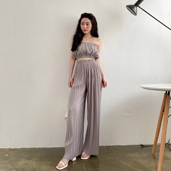 LULUS【A01210471】Y兩件式-百摺平口上衣+寬褲4色0708