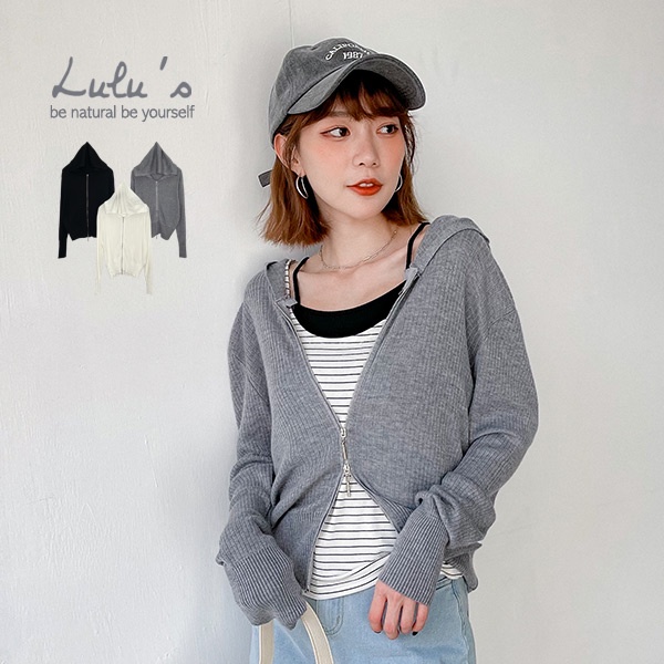 LULUS【A03210081】L坑條拉鍊連帽針織外套3色0916
