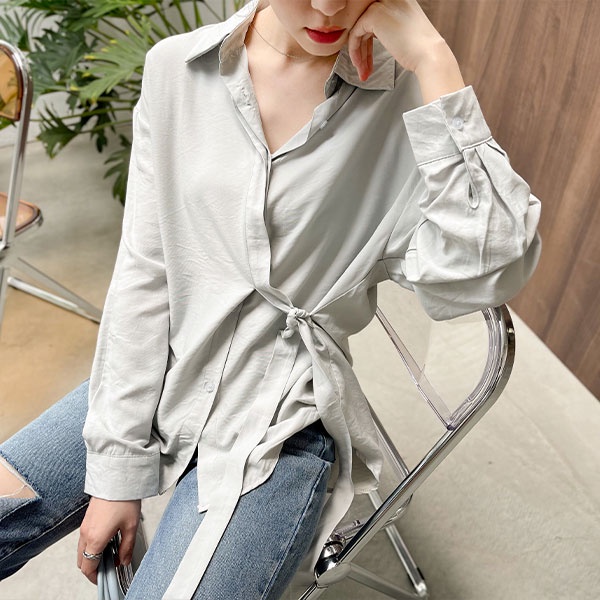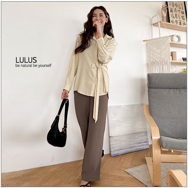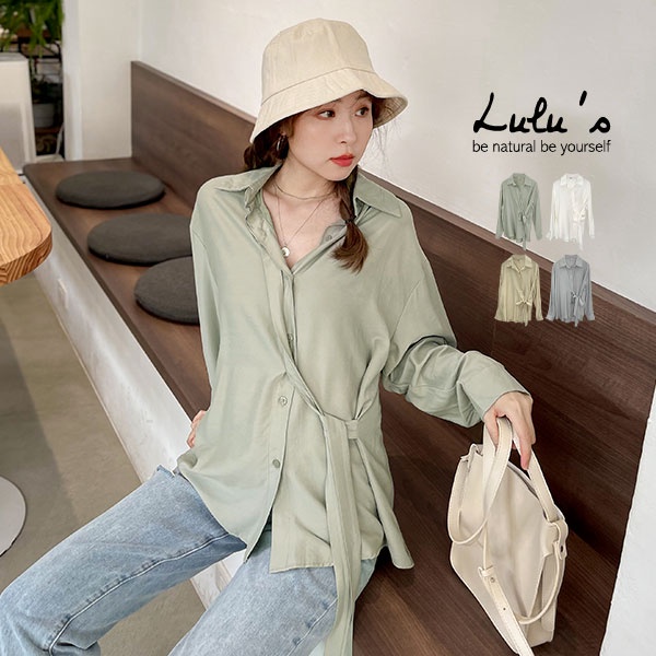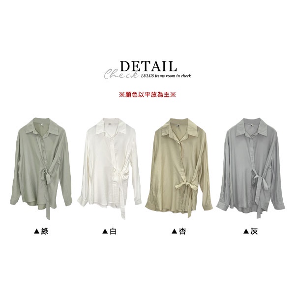 LULUS【A01210685】M側綁帶排釦翻領長袖襯衫4色0826