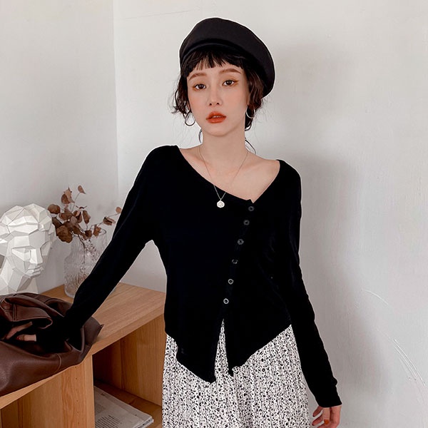 LULUS【A01210654】出清下殺Y不規則斜排釦長袖上衣3色0916