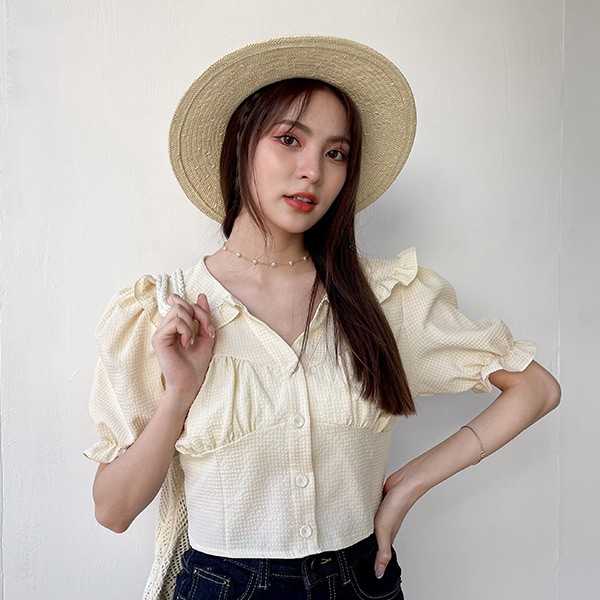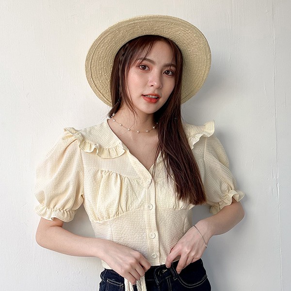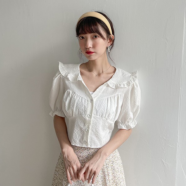 LULUS【A01210467】E荷葉翻領開釦上衣3色0624