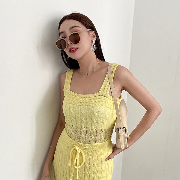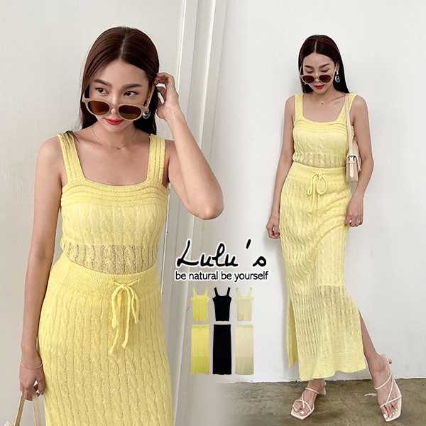 LULUS【A01210368】Y兩件式-麻花針織上衣+中裙3色0715