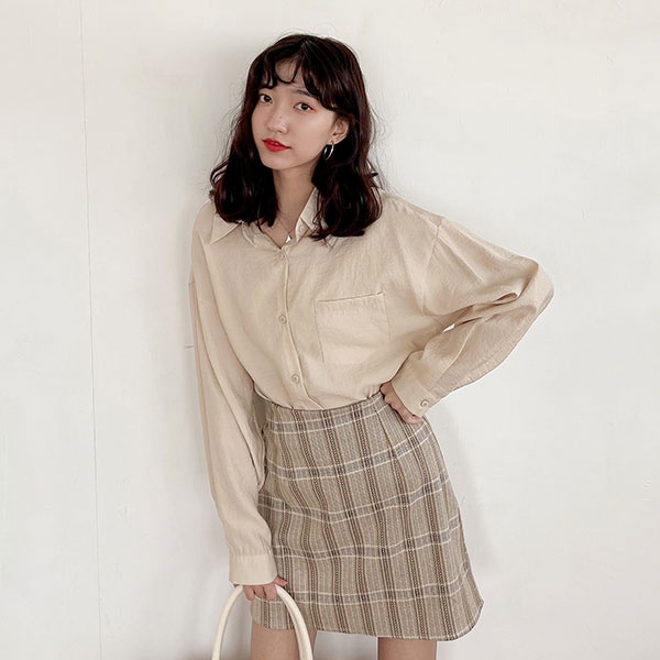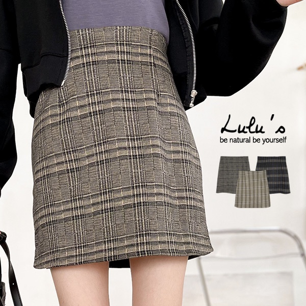 LULUS【A05210094】L格紋後鬆緊短裙3色0902
