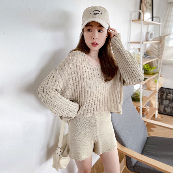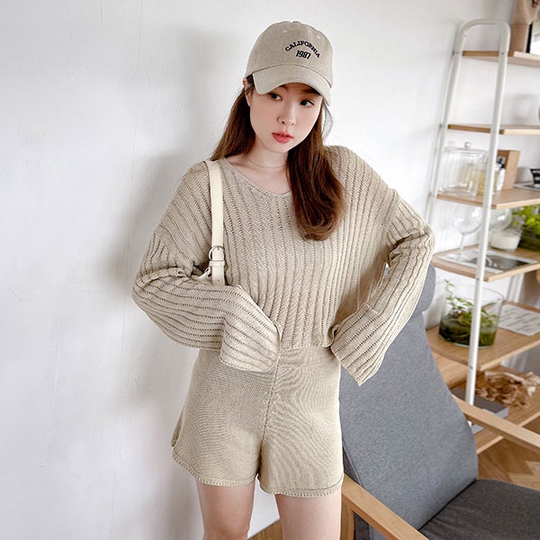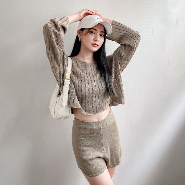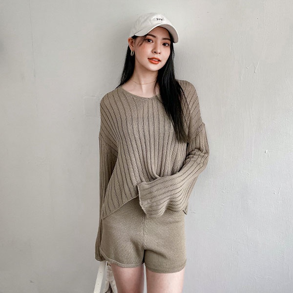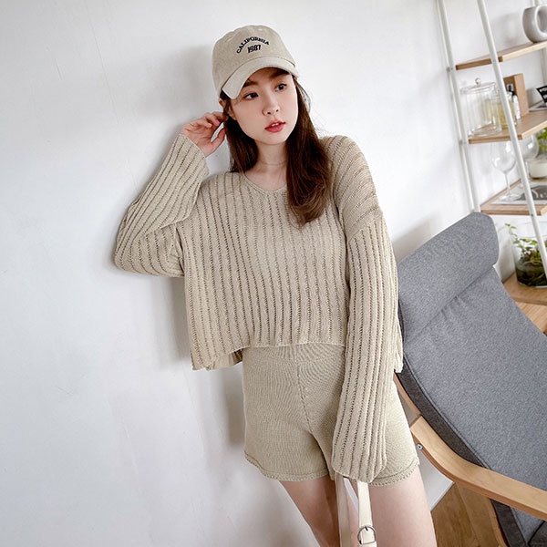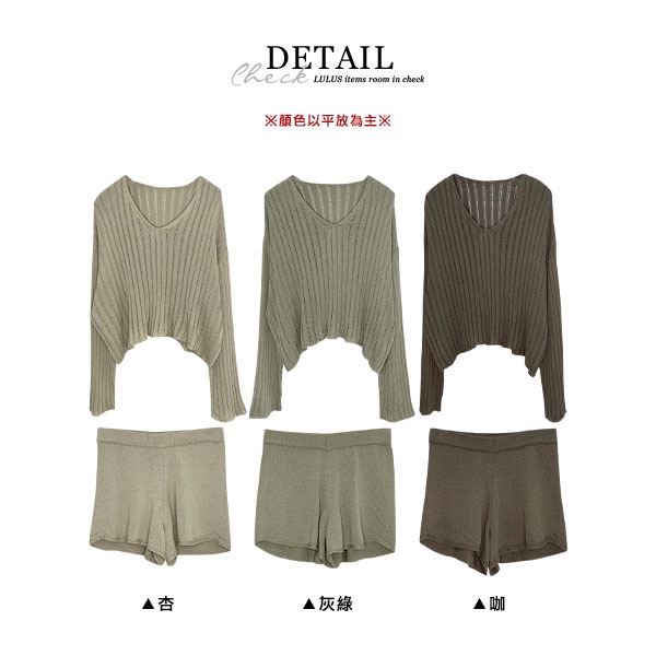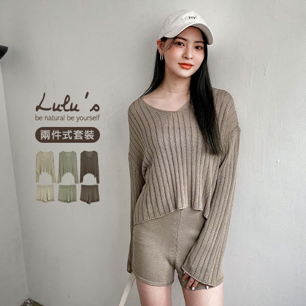 LULUS【A01210708】Y兩件式直紋簍空針織上衣+短褲套裝3色0916
