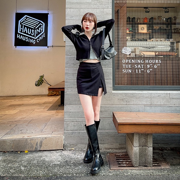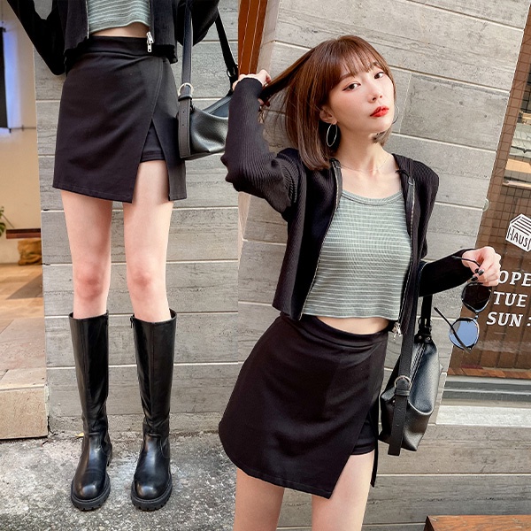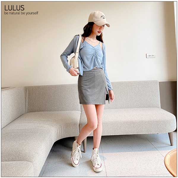LULUS【A04210257】S側開叉拉鍊彈性褲裙S-L2色0923