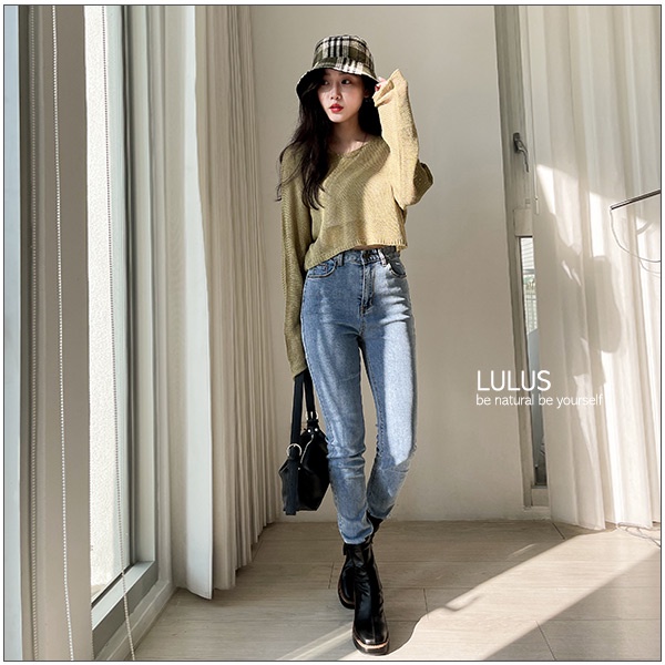 LULUS【A04210250】Y類韓組刷色窄管彈性牛仔長褲S-XL2色0909