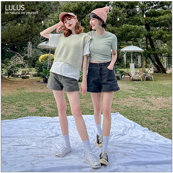LULUS【A04210362】P自訂款反摺高腰短褲S-XXL3色220217