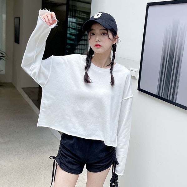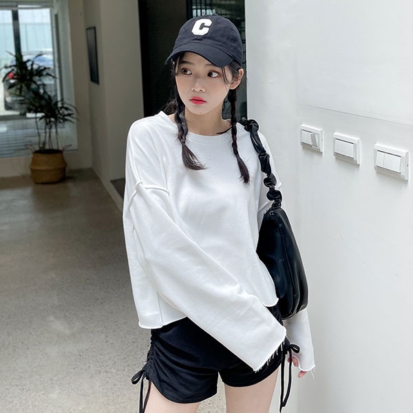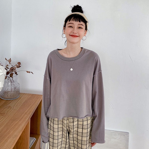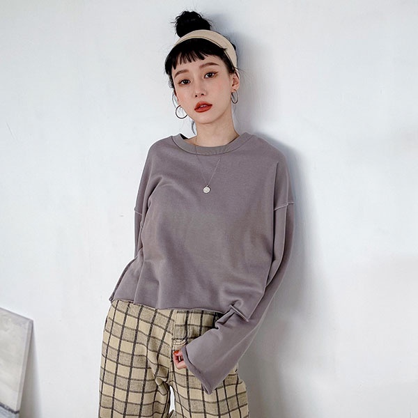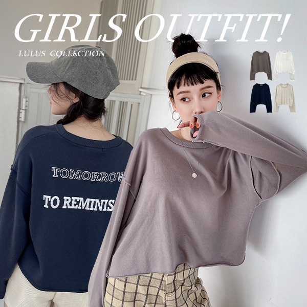 LULUS【A01210668】C不修邊後印字母長袖上衣4色0909