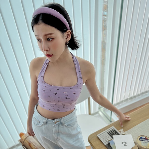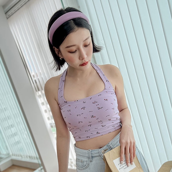 LULUS【A01220594】小碎花繞脖短版背心2色220818