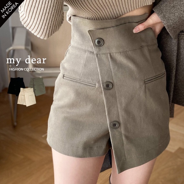 LULUS韓【A04210344】排釦高腰褲裙S-M2色/韓製/韓國直運1224