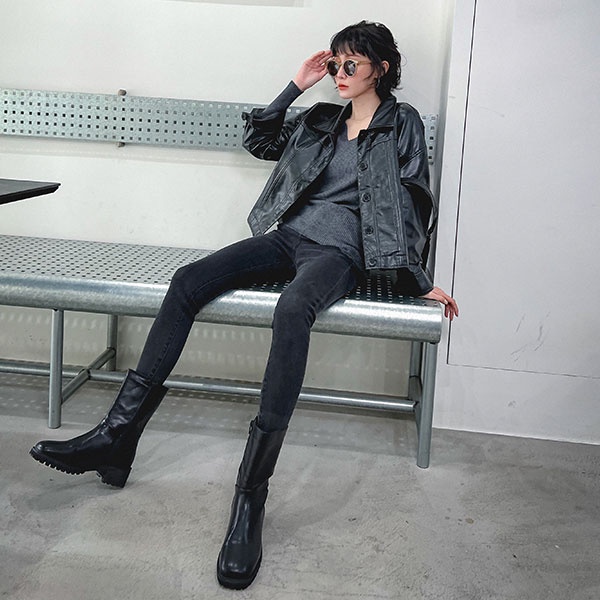 LULUS/基本款合身牛仔長褲S-XL黑【A04210262】顯瘦窄管褲/黑褲/丹寧高腰1125