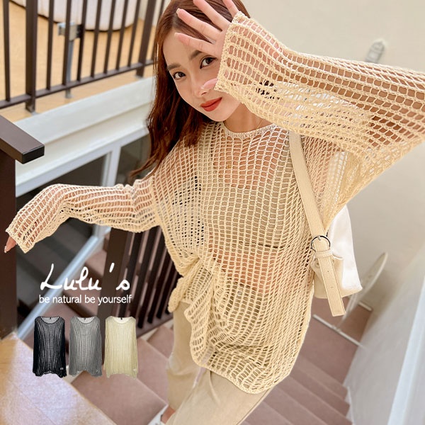 LULUS【A01220640】簍空針織長袖上衣3色220922