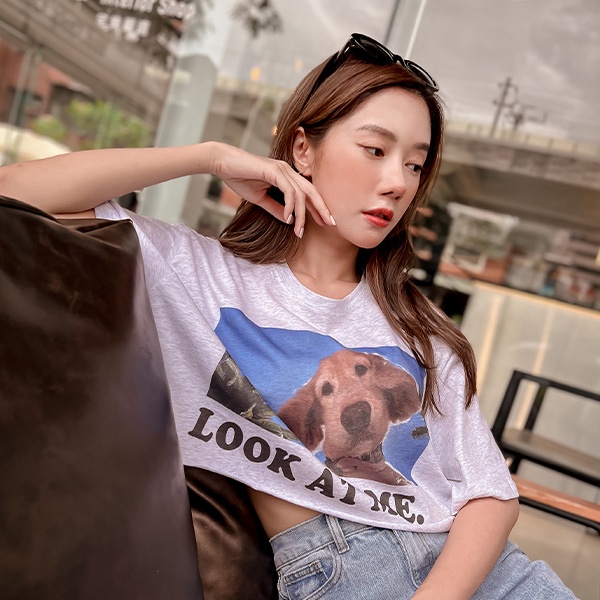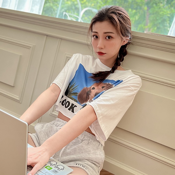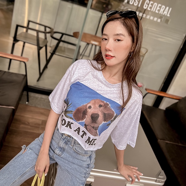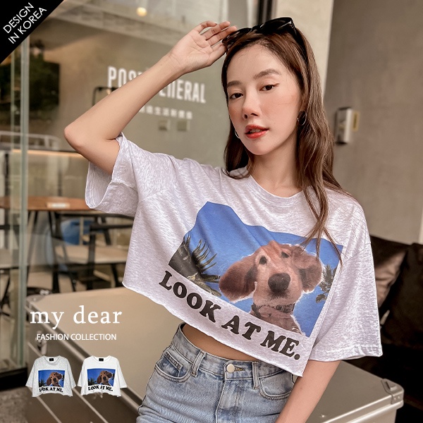 LULUS韓製【A01220554】LOOK小狗短版T恤2色220805