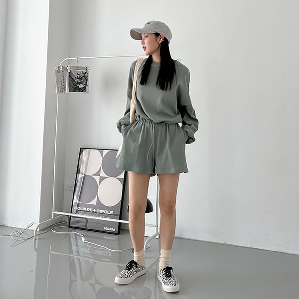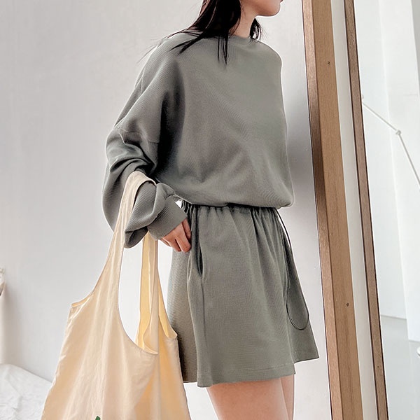 LULUS【A01220739】套裝自訂款華夫格抽繩素色上衣+短褲3色/台灣製220929