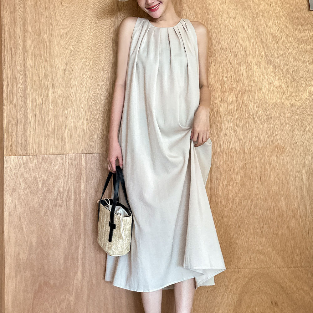 LULUS/設計感壓褶圓領洋裝2色【A02230070】230525