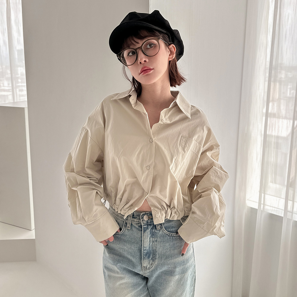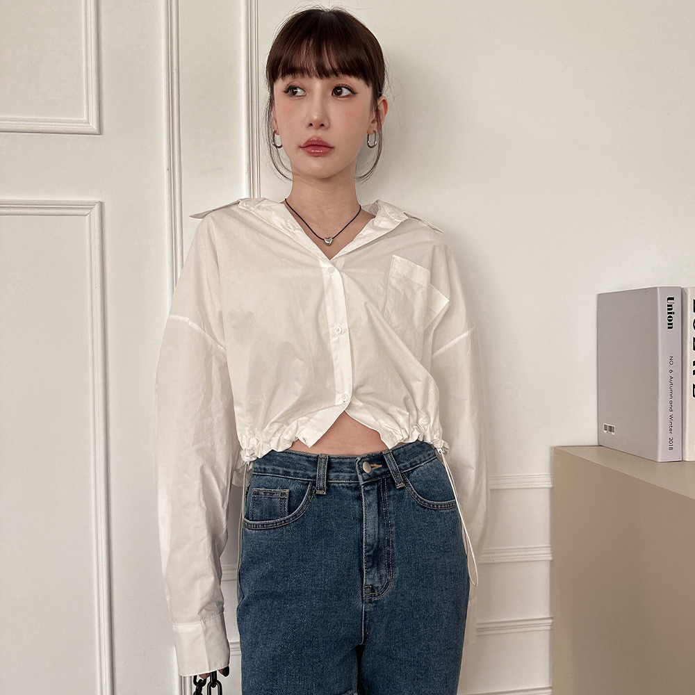 LULUS/下抽繩大口袋短版襯衫2色【A01230534】230831