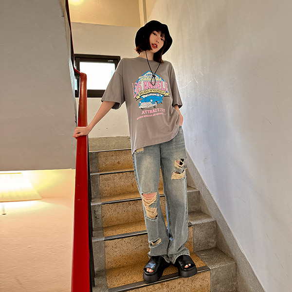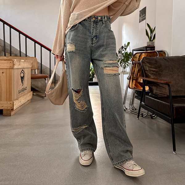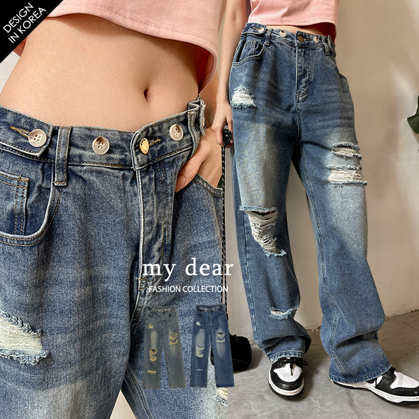 LULUS韓製/腰圍可調刷破牛仔褲2色【A04220274】230224