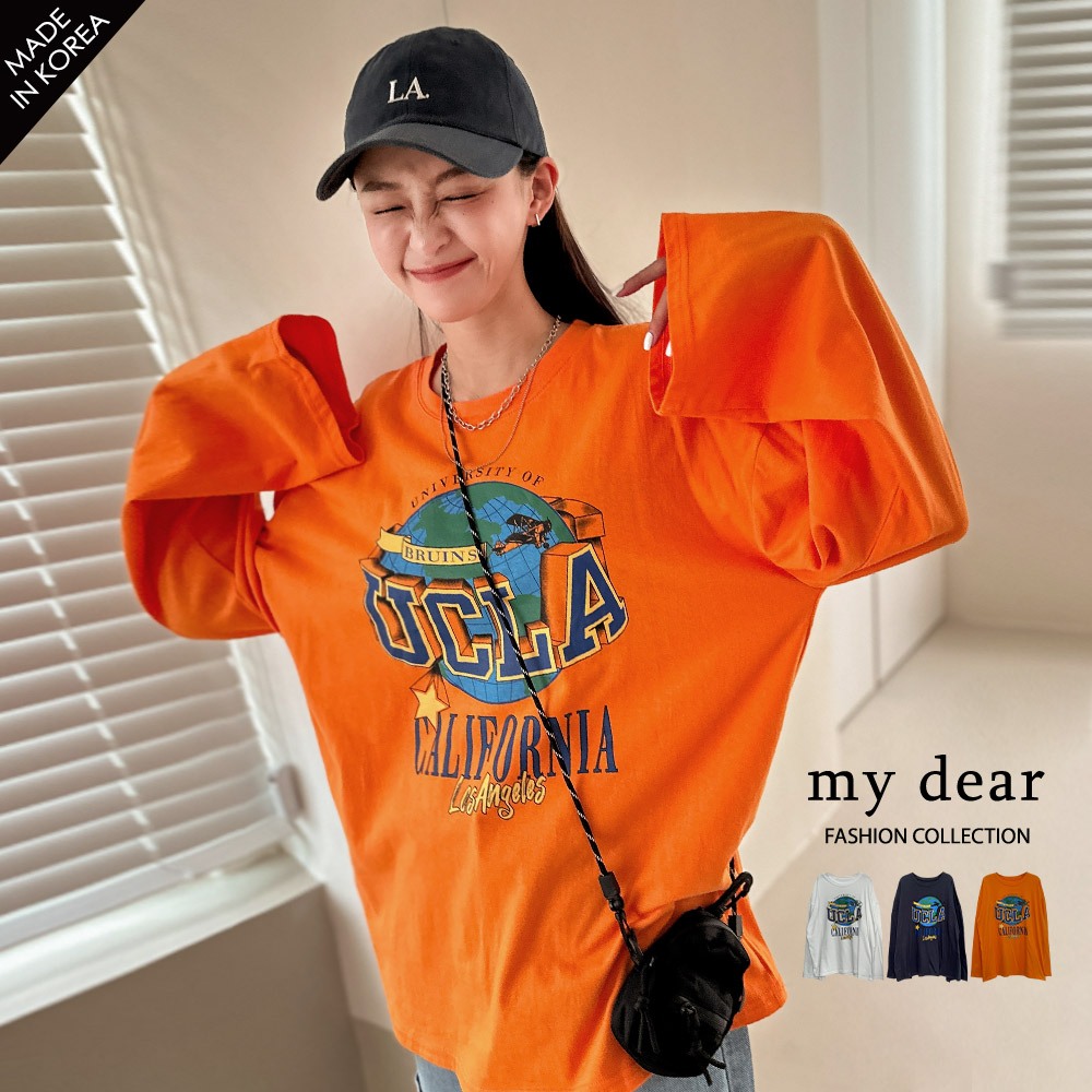 LULUS韓製優惠/UCLA地球膠印落肩長袖上衣3色【A01230611】正韓231006