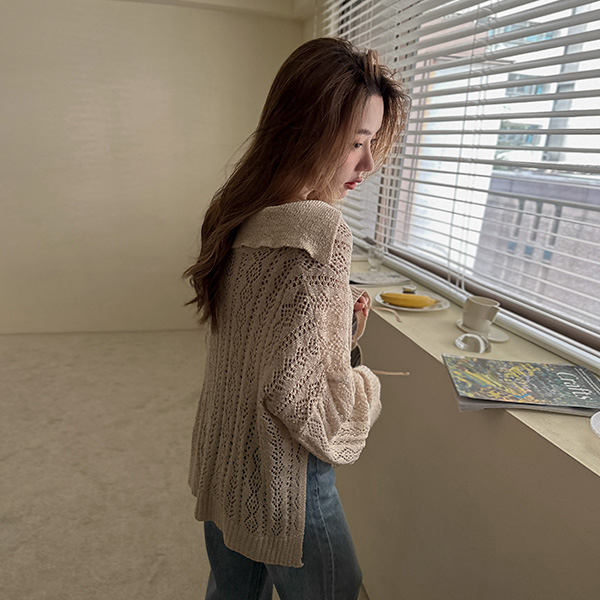 LULUS/小V翻領針織簍空上衣2色【A01220985】渡假海邊穿搭/比基尼外罩230216