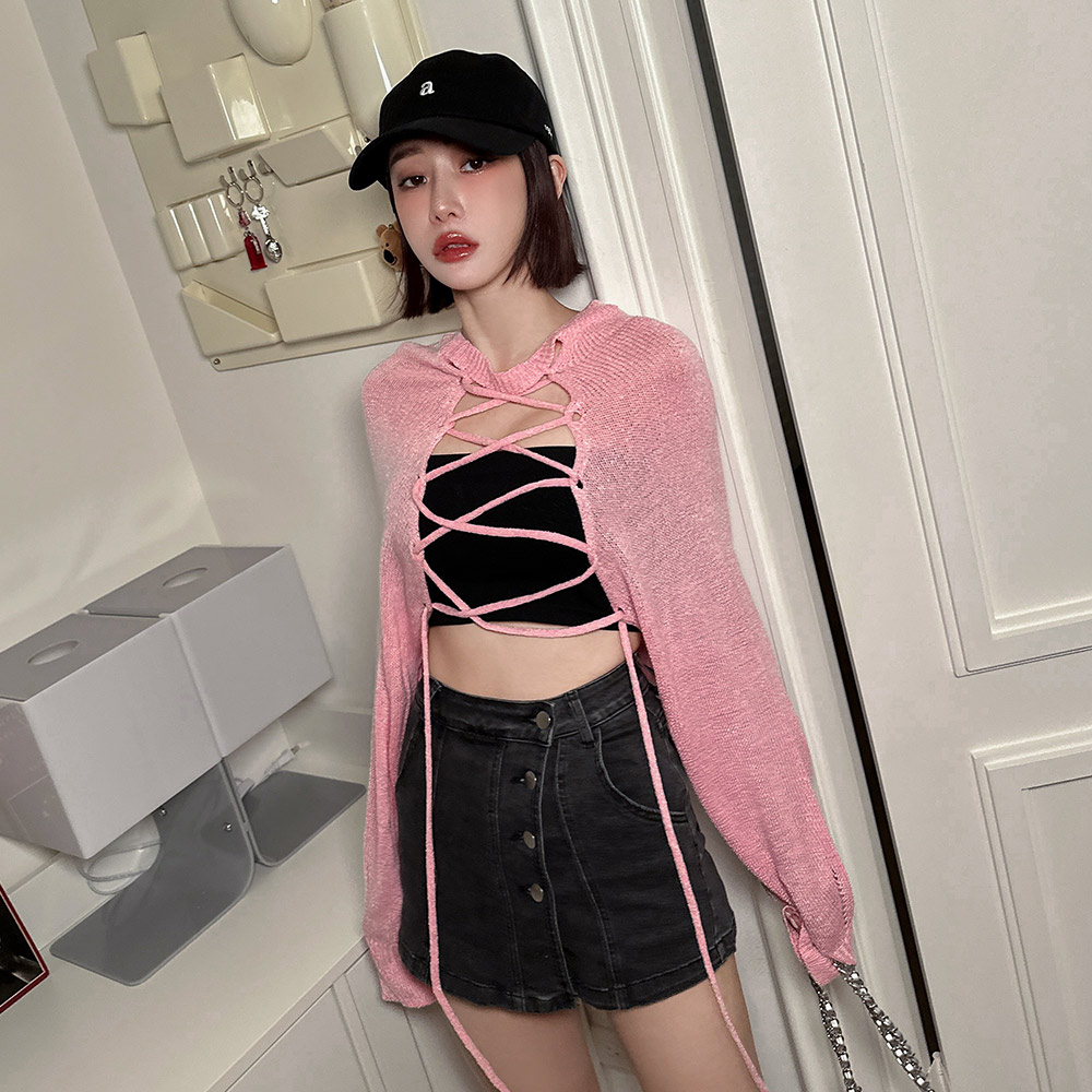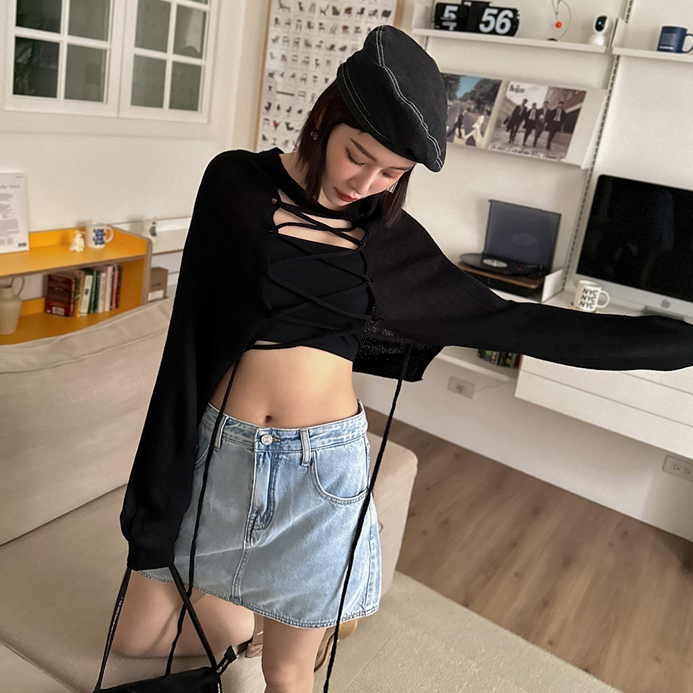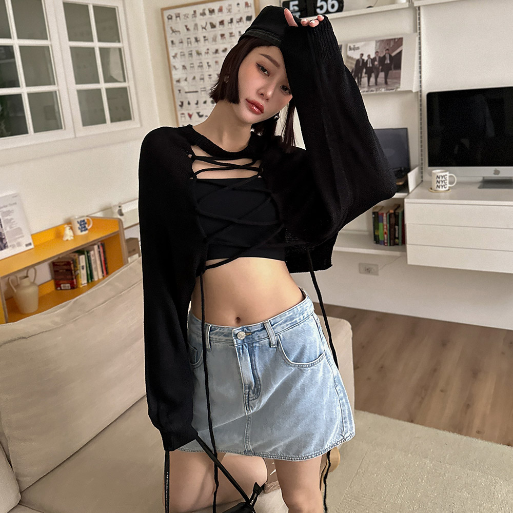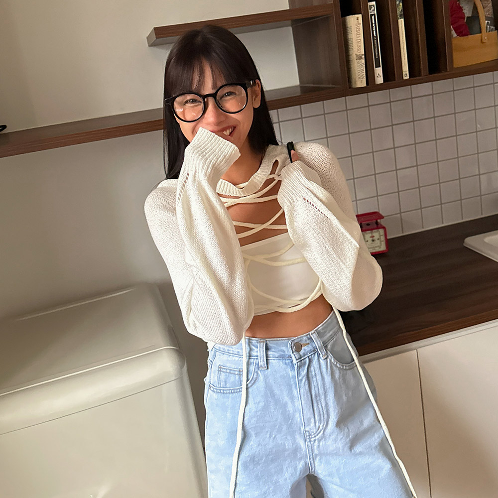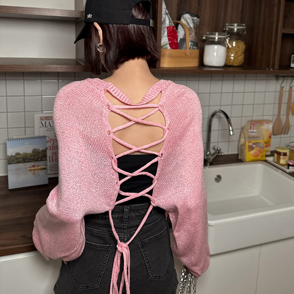 LULUS/清/兩穿交叉綁繩針織上衣3色【A01230467】230803