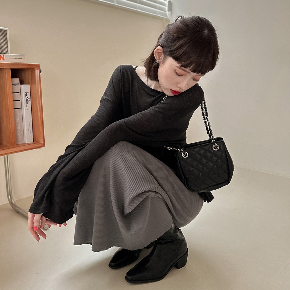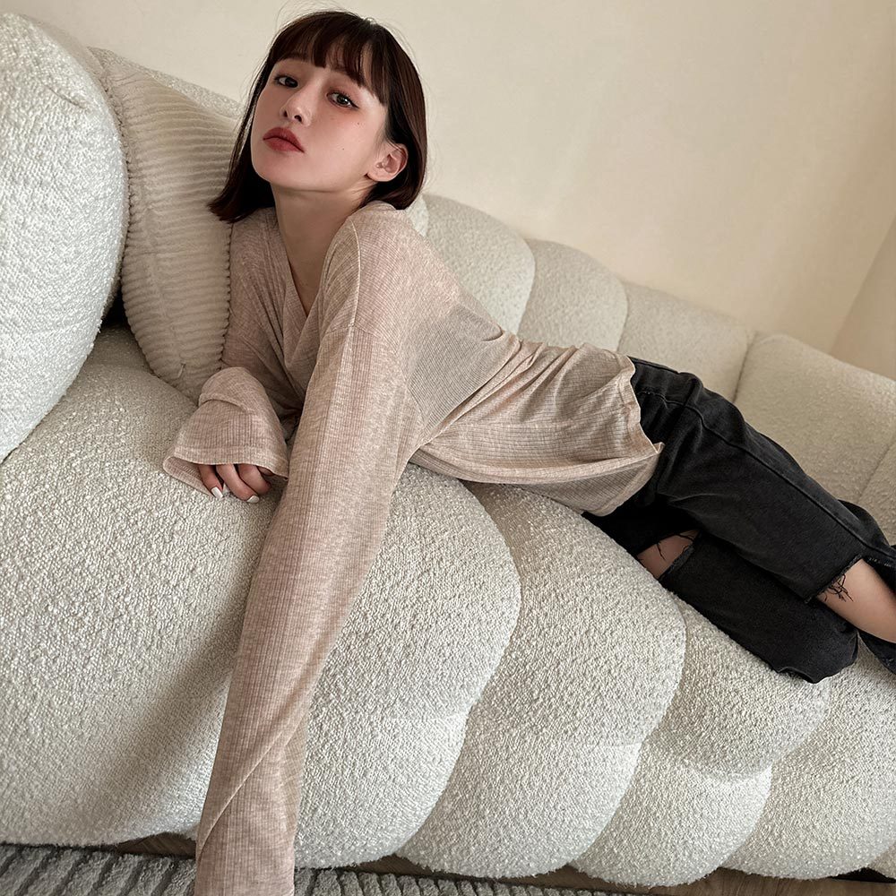 LULUS/清/若隱若現的美微透圓領上衣3色【A01230554】長袖透視針織231005