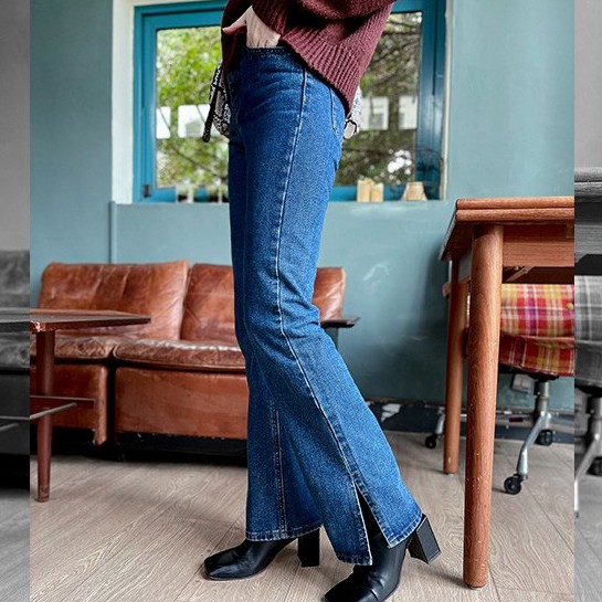 LULUS【A04200260】C側開叉牛仔長褲S-L藍1231