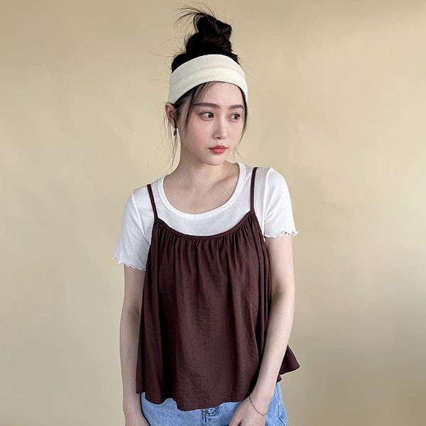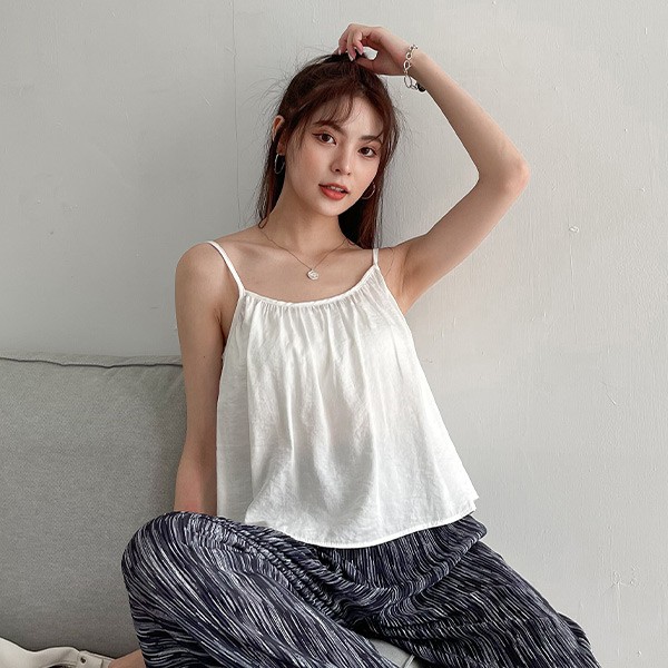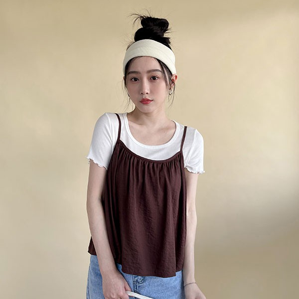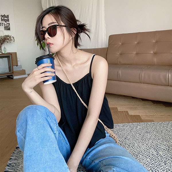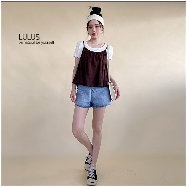 LULUS【A01210399】Y細褶綁帶細肩帶上衣4色0624