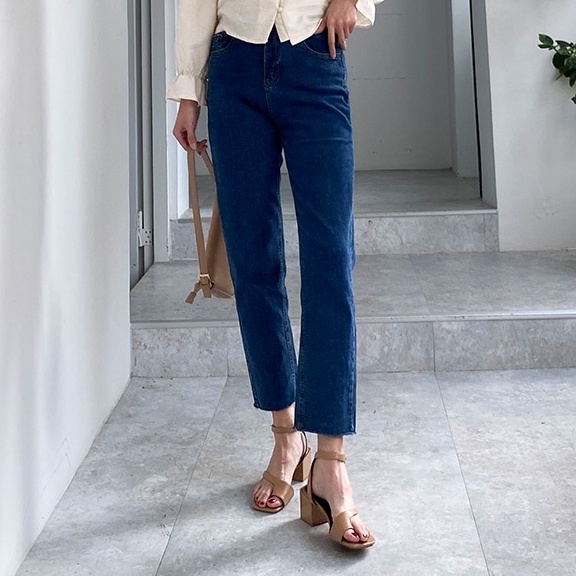 LULUS【A04190244】類韓組-下擺不修邊高腰牛仔長褲S-XL-3色高質感牛仔褲