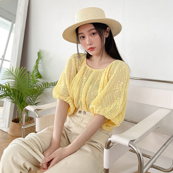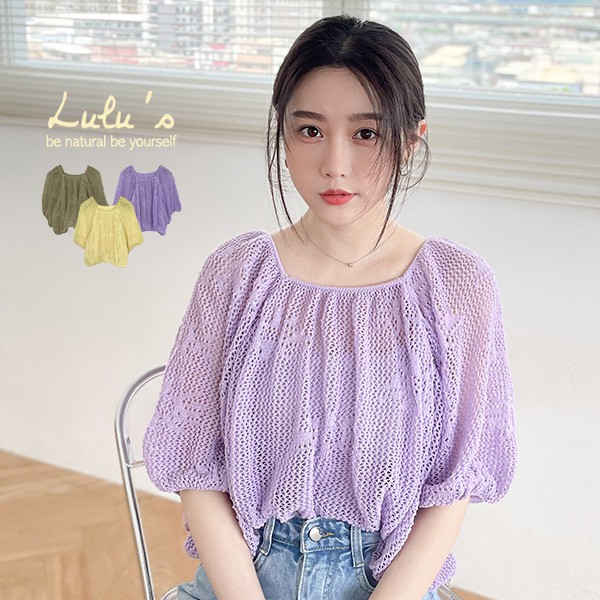 LULUS【A01210555】Y簍空鬆緊針織上衣3色0715