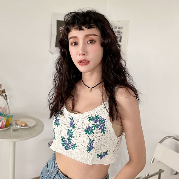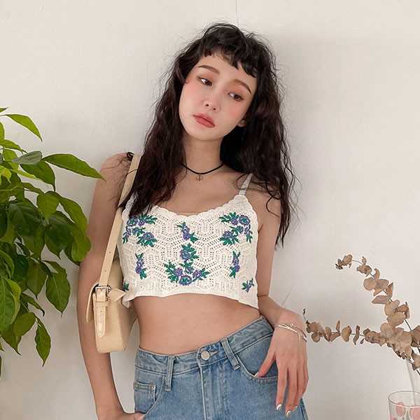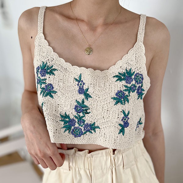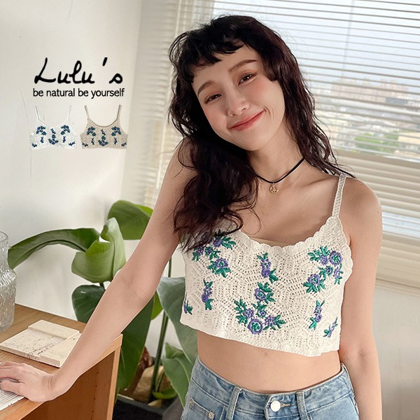 LULUS【A01210507】Y刺繡花朵針織無袖上衣2色0722