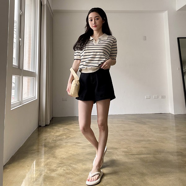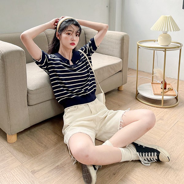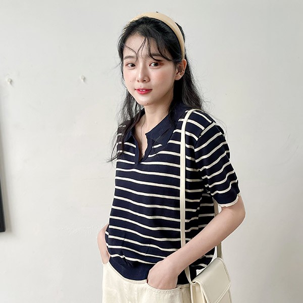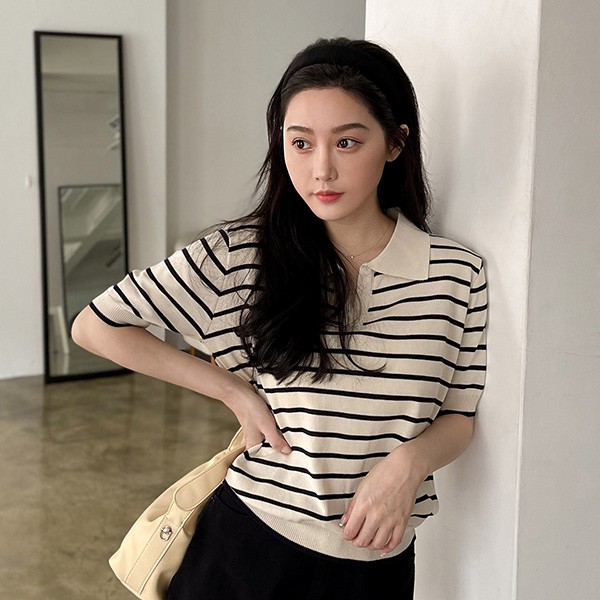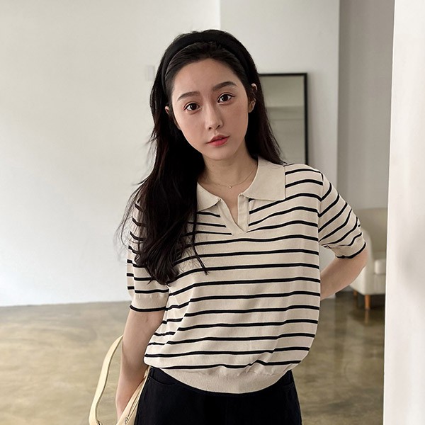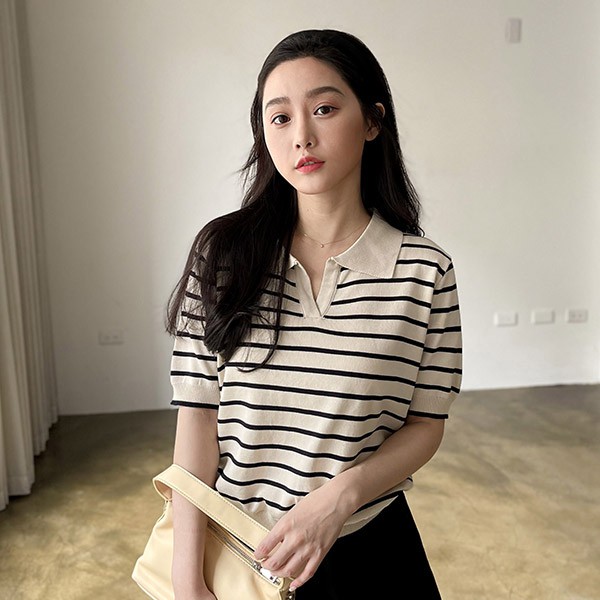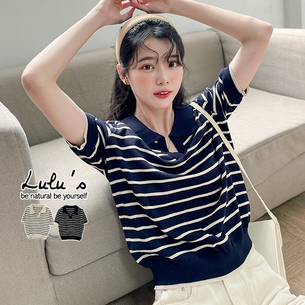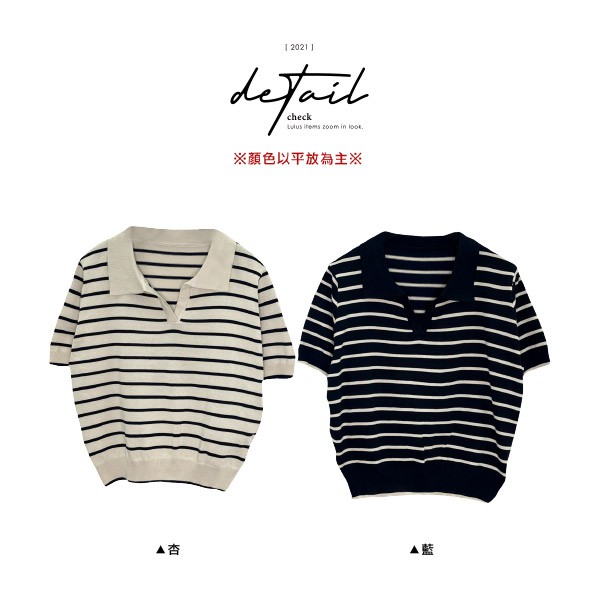 LULUS【A01210500】Y條紋小V領針織上衣2色0708