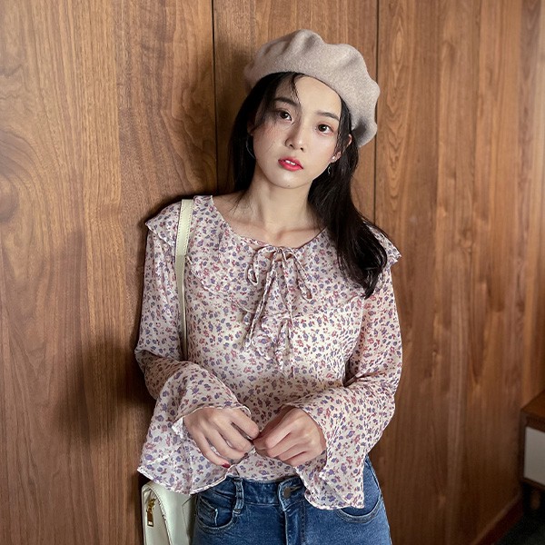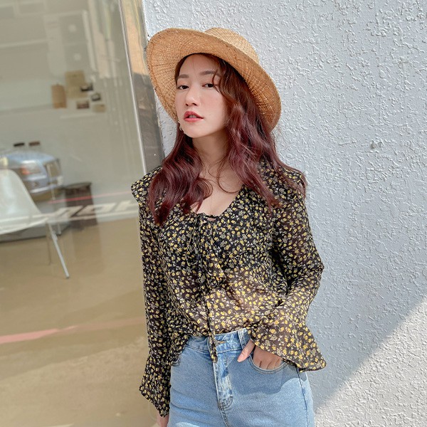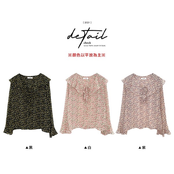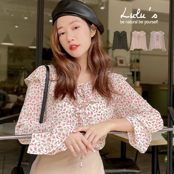 LULUS【A01210033】Y花朵荷葉綁帶上衣3色0304