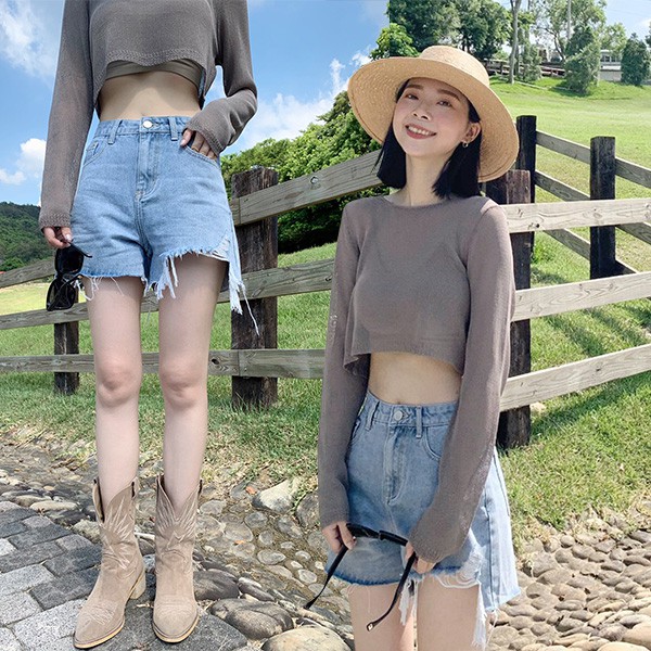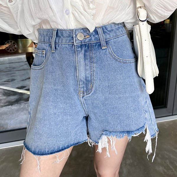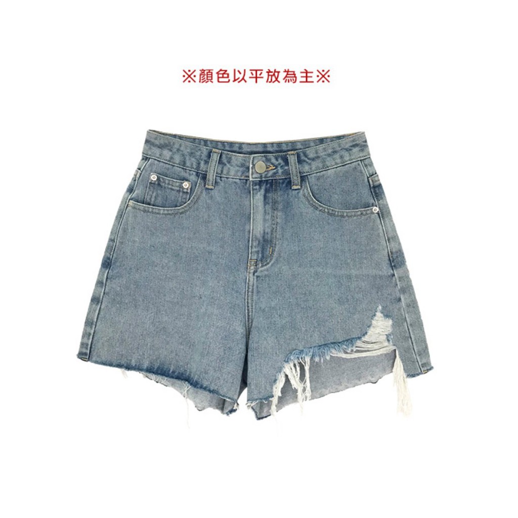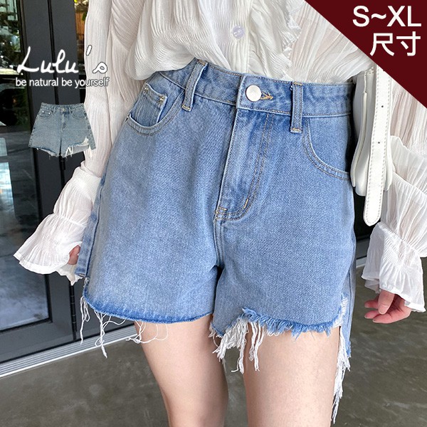 LULUS【A04200157】出清特賣K自訂款單邊割破牛仔短褲S-L藍/丹寧/刷破褲0806