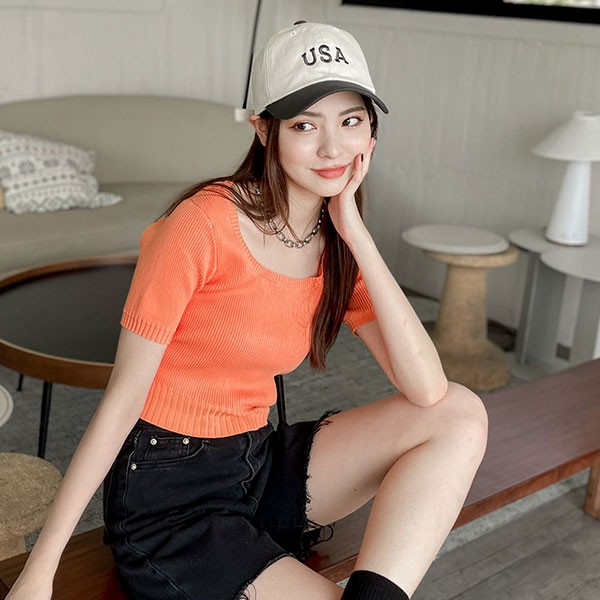 LULUS【A01210168】Y方領坑條短版上衣5色0415
