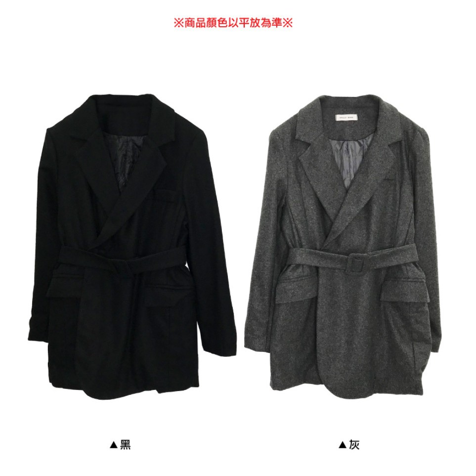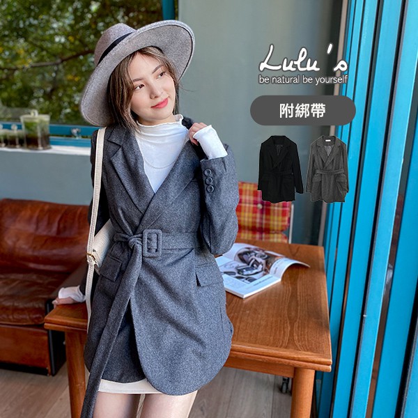 -LULUS【A03200137】Y雙口袋毛呢外套附綁帶2色1126