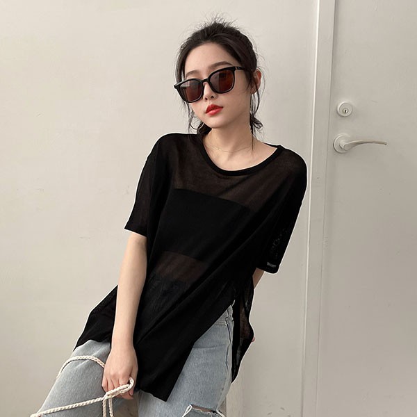 LULUS【A01210375】C透膚短袖上衣4色0722