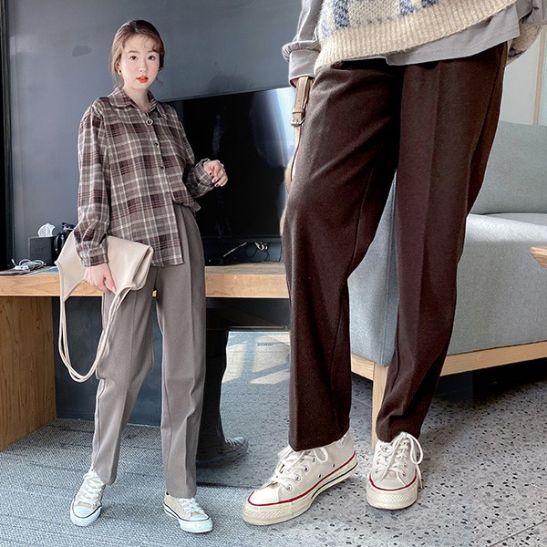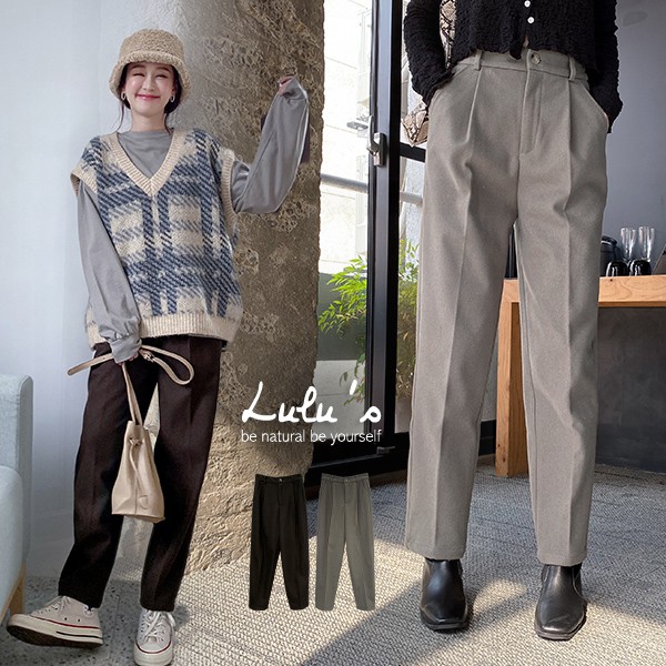 LULUS【A04200225】C後鬆緊毛呢長褲S-M2色1210