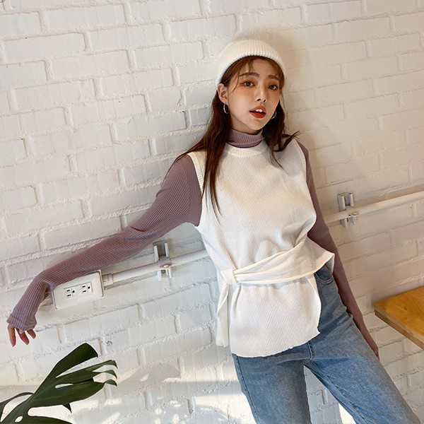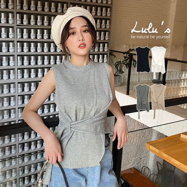 LULUS-Y前穿繩羅紋無袖上衣-4色 【01190829】
