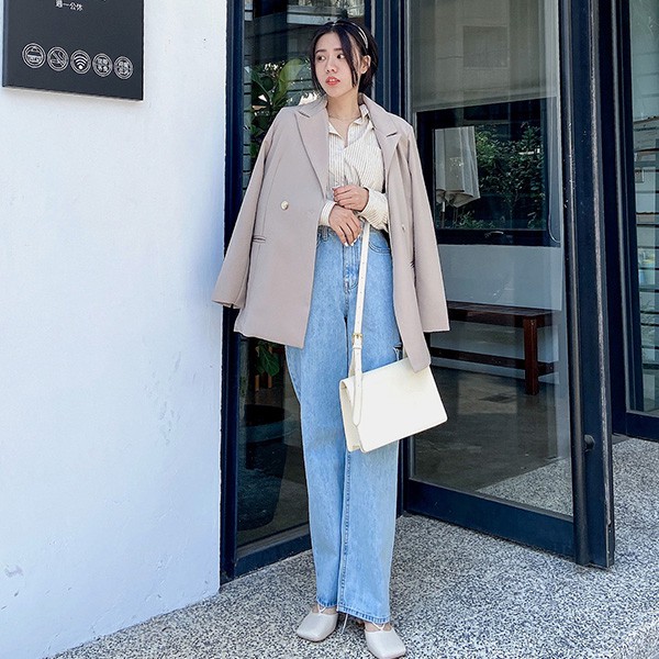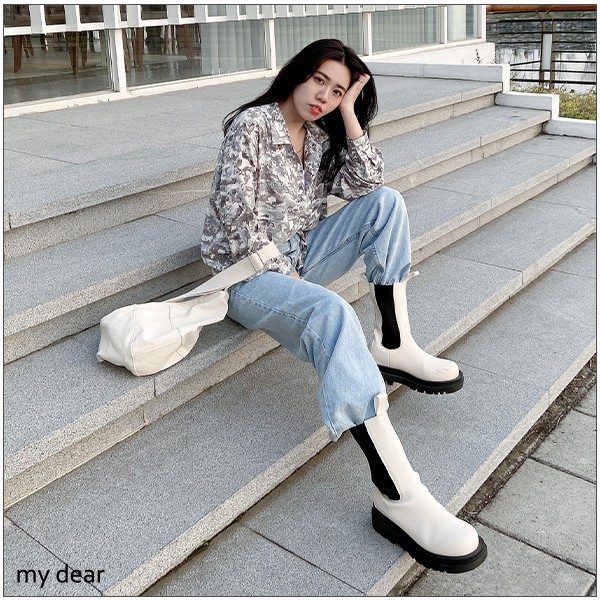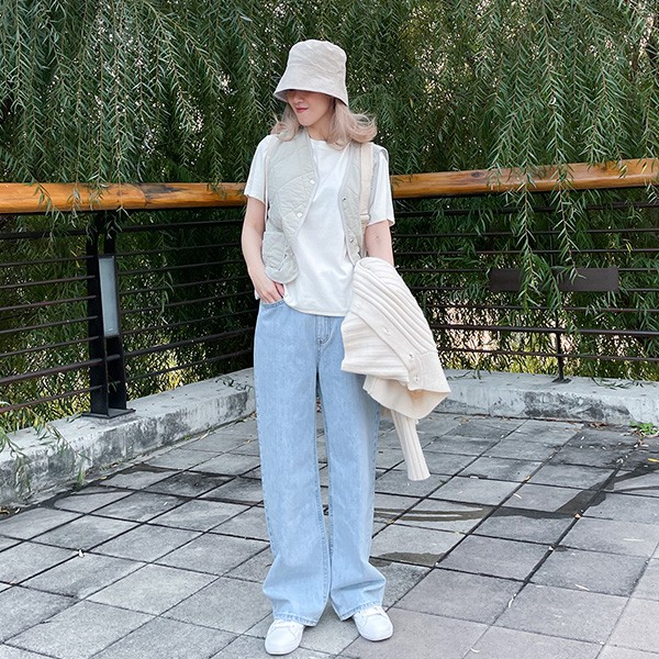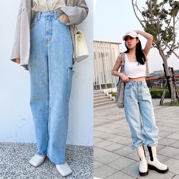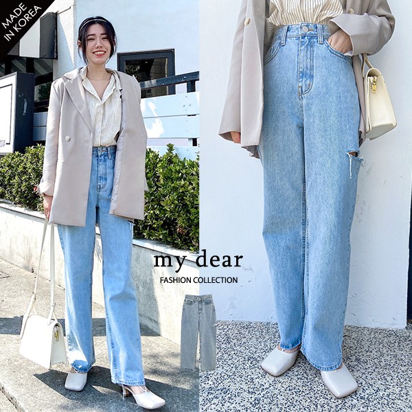 LULUS韓【A04210015】單邊腿割破牛仔褲S-L藍0225