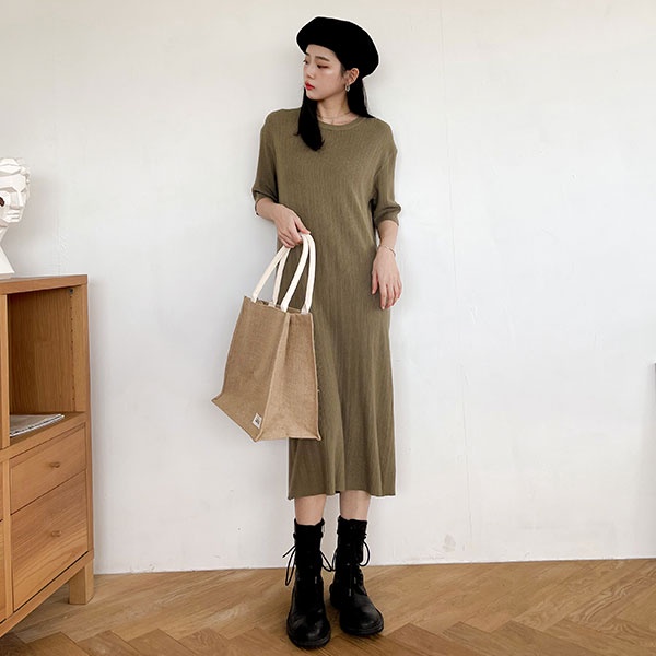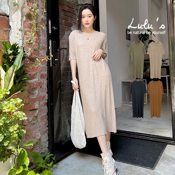 LULUS【A02210160】E細坑條五分袖針織洋裝4色1007