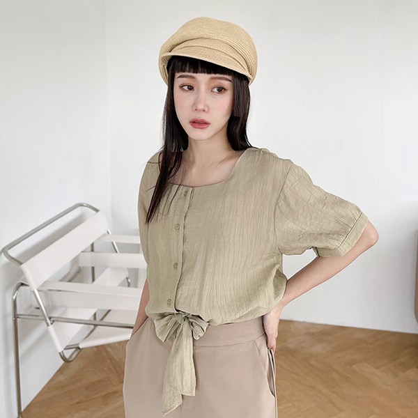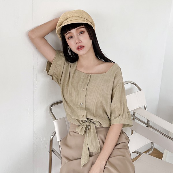 LULUS【A01210321】E下擺綁結壓紋上衣2色0722