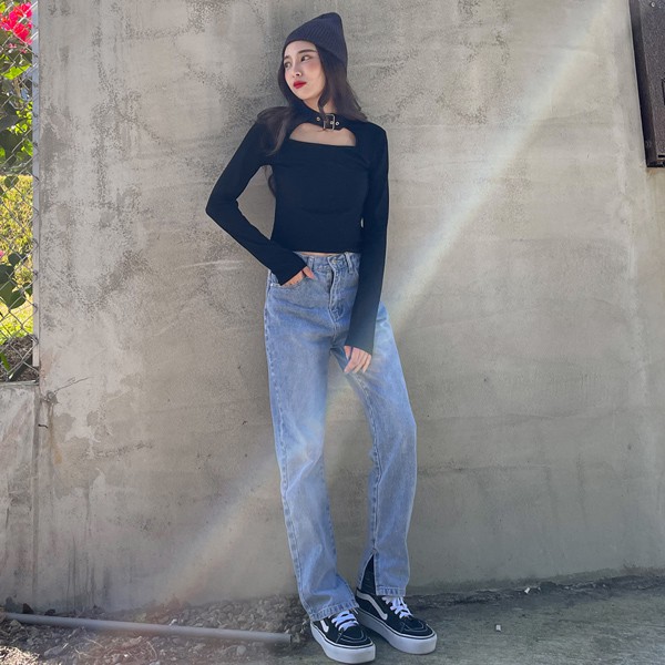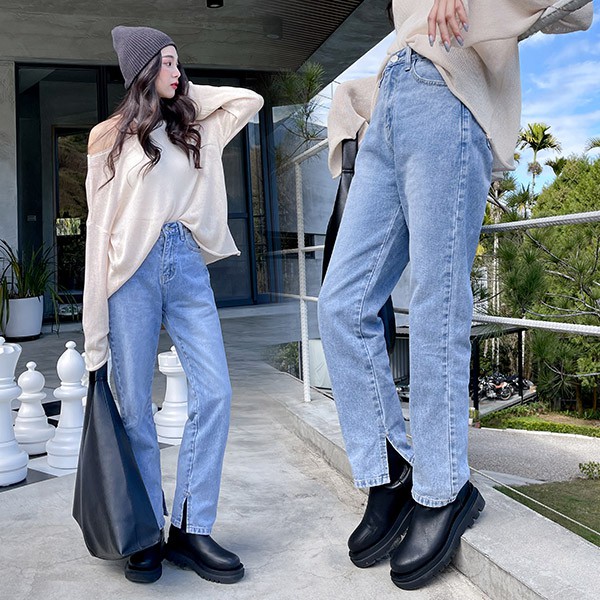 LULUS【A04210004】K自訂款褲管開叉牛仔長褲S-XL藍0225