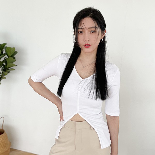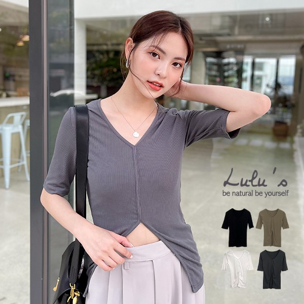 LULUS【A01210331】Y開叉羅紋上衣4色0520