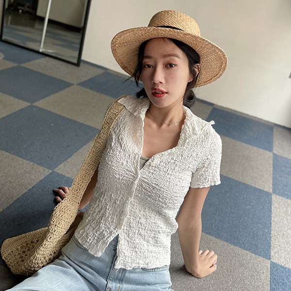 LULUS【A01210290】出清39折Y壓皺拷克邊開釦上衣4色0603