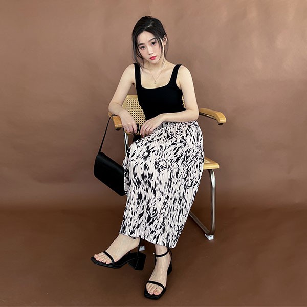 LULUS【A05210063】C斑駁百褶中裙杏0624