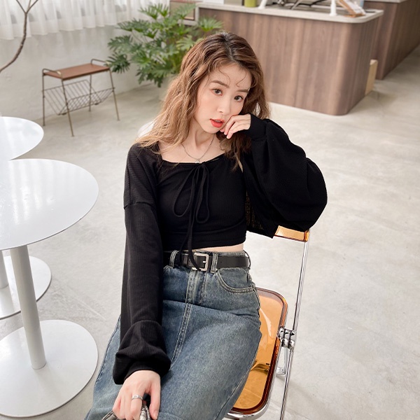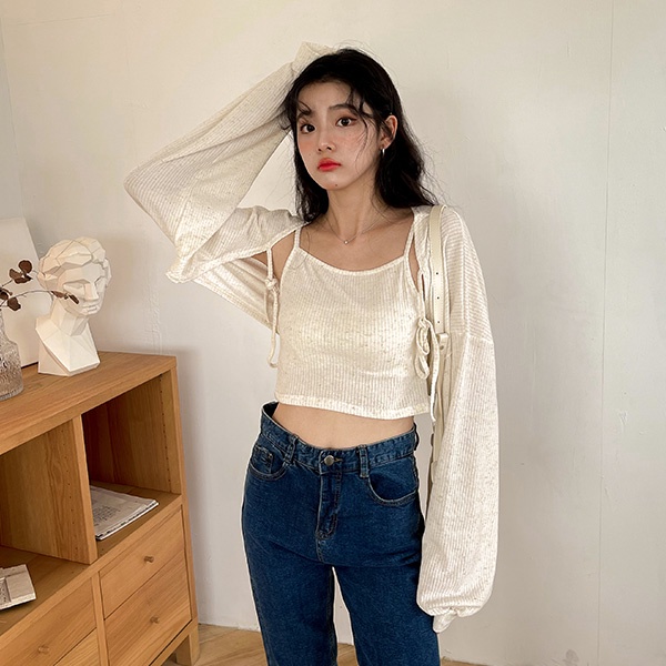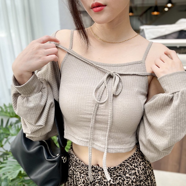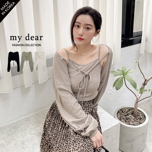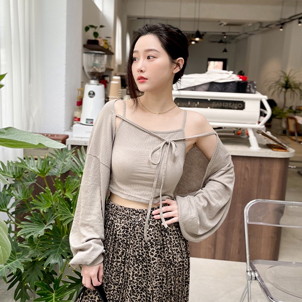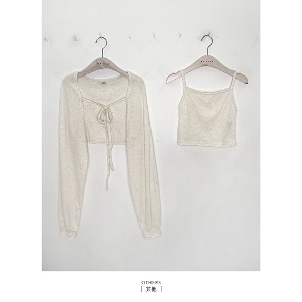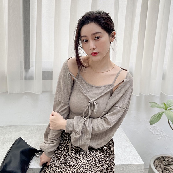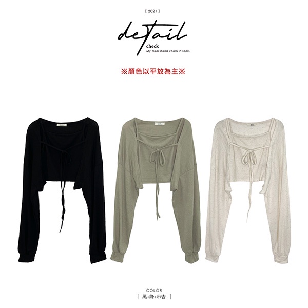 LULUS韓【A01210627】兩件式綁結長袖罩衫+背心3色0827